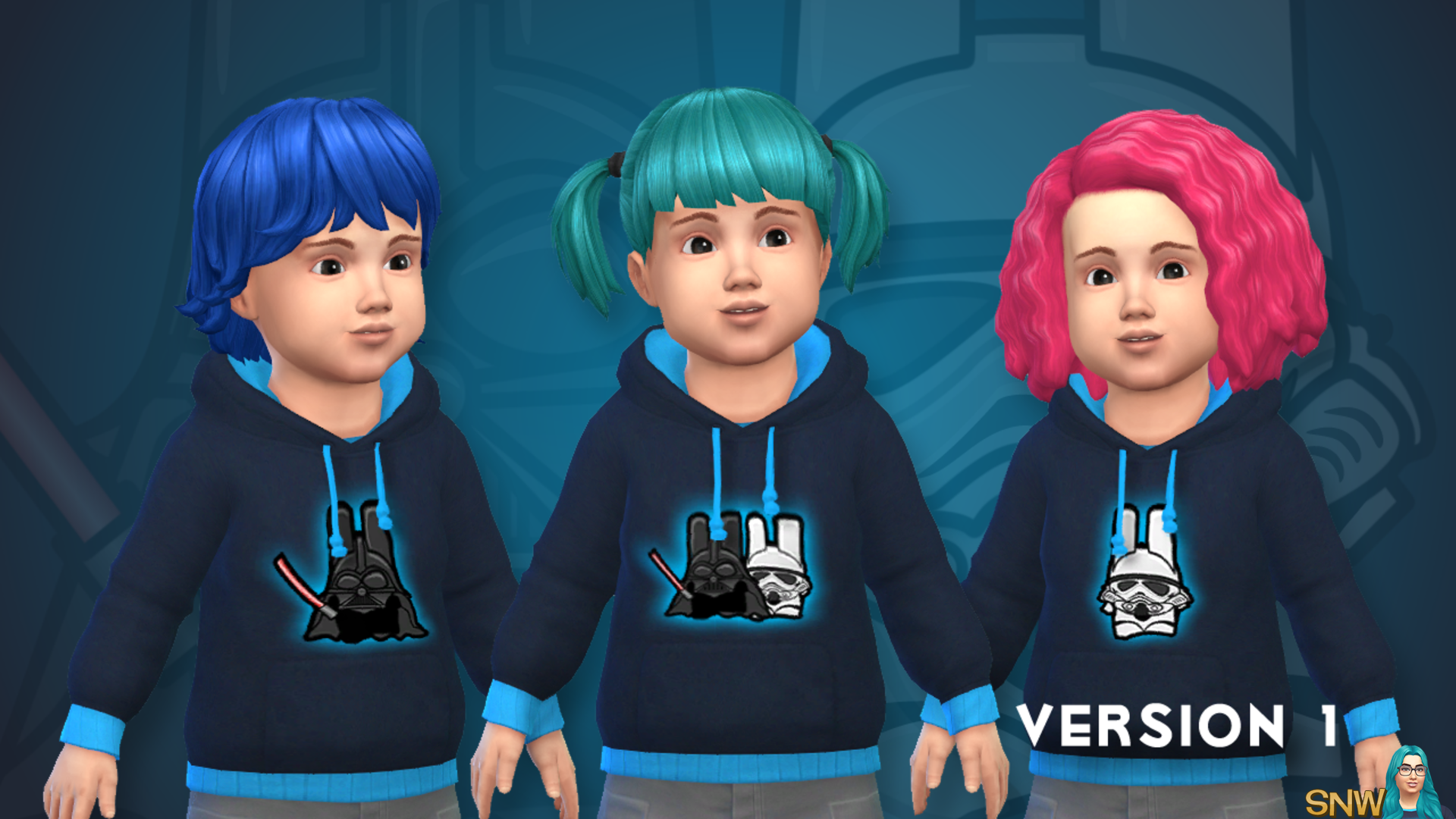 Of course I couldn't resist creating custom content for the wee ones. So I present to you, the first toddler custom content for The Sims 4 on SNW... Freezer Bunny Star Wars hoodies! I made this illustration about 2 years ago. And I've made a bunch of shirts already for adults and kids. But now toddlers can wear cute, nerdy outfits too!