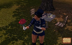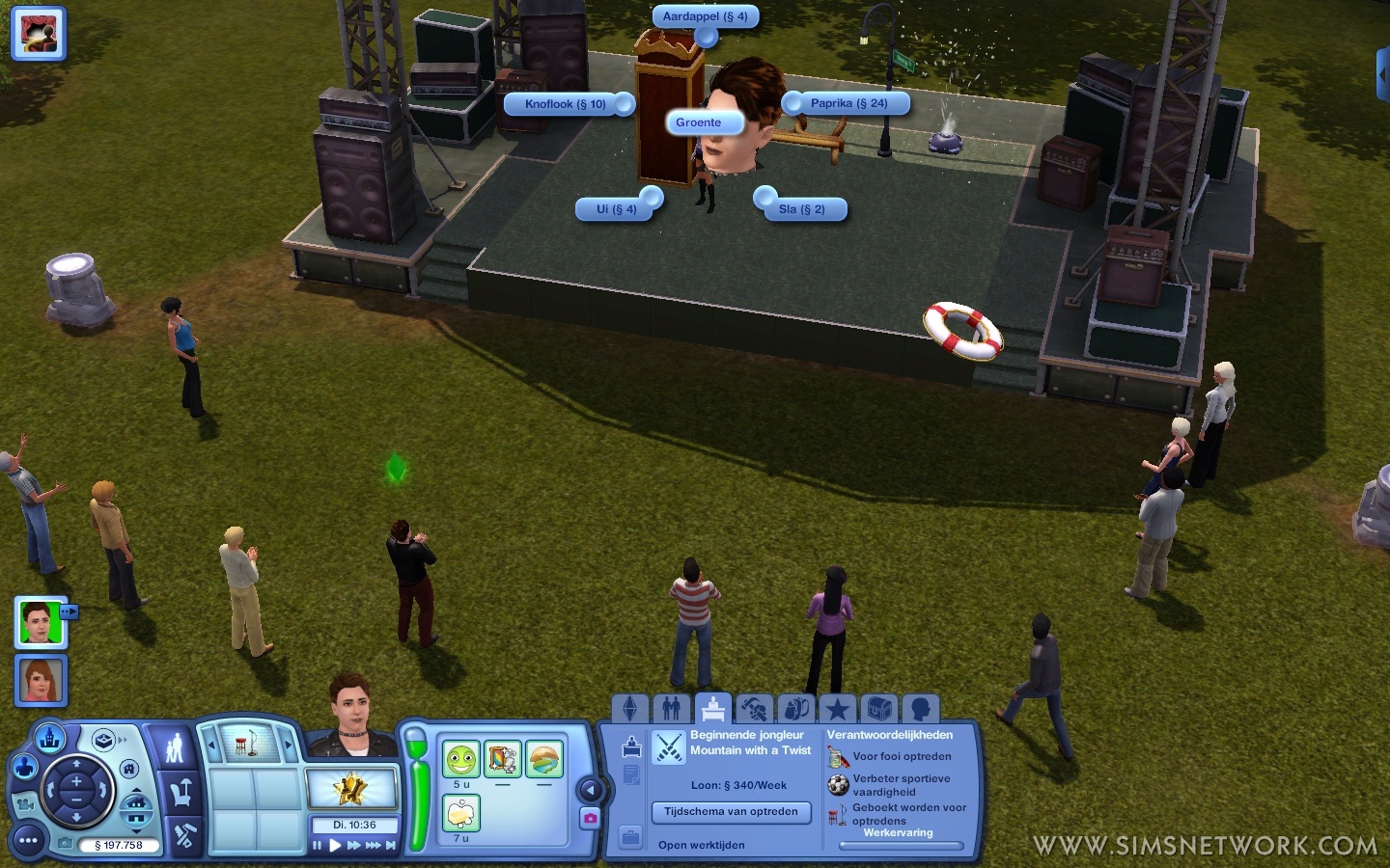 Sims in the audience, also the ones you control, can simply watch the show, make a request, harass the artist and the most important part: throw stuff at the artist! And there is so much to choose from! Sims can throw vegetables (potato, paprika, lettuce, onion and garlic), ingredients such as (marshmallow, steak, egg, cheese and tofu), fruit (watermelon, banana, apple and tomato), miscellaneous objects (rubber ducky, bath bubbles, baseball, newspaper, life buoy, toy rabbit, teddybear and football), flowers (roses, cow plant, orchids, sunflowers and daffodils) but you can also throw actual food (pizzas, cakes and juice). The Sims who get stuff thrown at them, can keep everything. Hmm, yummy pizza! It's pretty safe. At least I didn't see an option to throw panties hahaha.