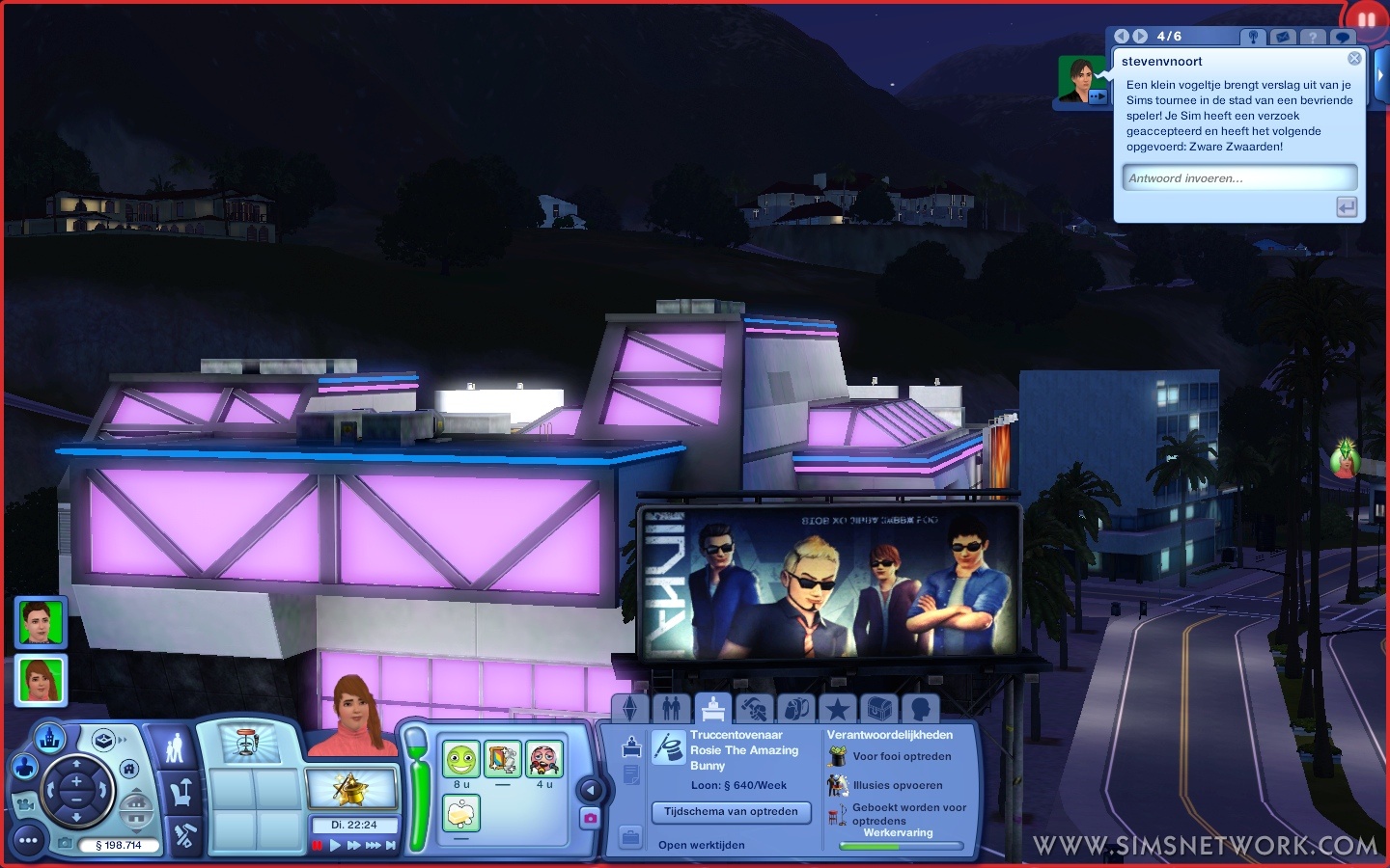Last week (Friday March 2, 2012) I visited Electronic Arts again. This time I traveled to Electronic Arts Benelux (or more specific, EA in The Netherlands). Why did I go there? Well to play The Sims 3 Showtime again, obviously! Yep, we had another hands-on event. Only this time I didn't have to share my computer with anyone else. We got to try out one specific career (one that most of us had chosen prior to the event). And we got to play with SimPort. I will try to show all of you this amazing new Magician career. Because that's the career I chose to highlight in this preview. Please note that I had to play on a Dutch Sims game, hence I will not be able to translate everything properly, but I'll try my best. The screens with dialogs are also in Dutch, but most of it should speak for itself. I hope you will enjoy the preview. And when you're done reading and looking at all the cool pictures and videos, please leave me a comment to share your thoughts on the pack and the preview itself! Thanks!