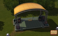 Although I know what the options are, I have no actual footage of building my own stage. We did get time to play which is cool, but it's still not enough to do everything you would like to do. Hence I only have a few videos of an actual performance, where my Sim would build up the stage in advance (you can see them under The Performances, further down this page). But she used the stage setup from the venue itself. When you are going to perform at a venue, you can click the stage and choose to use the stage setup from the venue, use a previously saved stage setup or create a new stage setup.