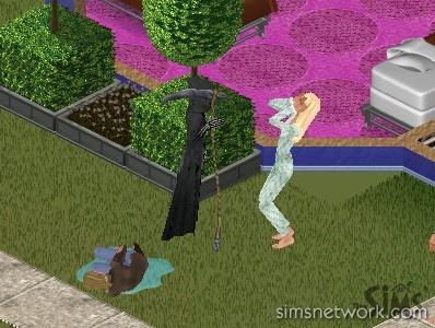 - Finally, the best addition to the game would have to be the Grim Reaper. If more than one Sim inhabits your house, and one dies, the Grim Reaper appears and the living Sim must plead for the others life. The Sim could live, die or be reincarnated as a zombie to make things more interesting. This gives some of the more "macabre" players a little something extra to fool around with.