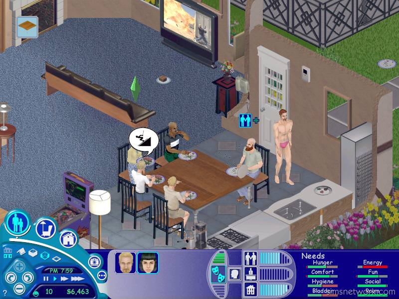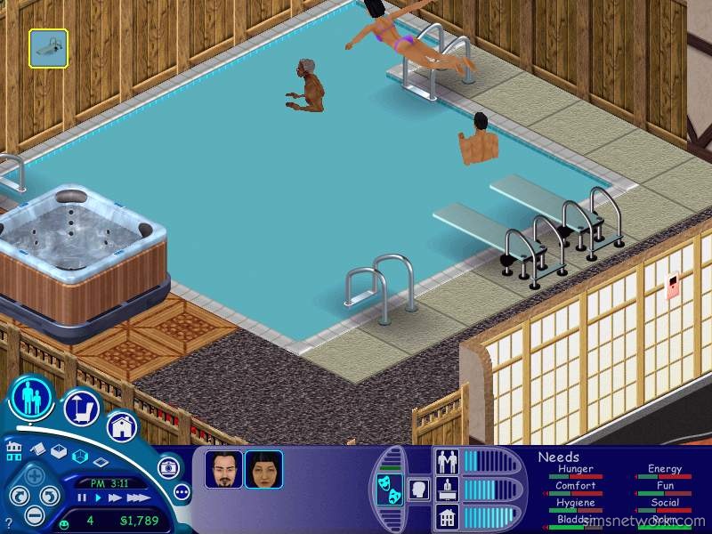 WW: [laughs] Well, there is one thing that I have a lot of fun with. I use the pool tool to design a Pac-Man maze. Then I put one man and two women in the pool and then I take the ladders away so they couldn't get out. I would then make both the women madly in love with the guy, then I would only drive the guy, and I wouldn't control the women. So I had to keep him away because as soon as one of them caught him and kissed him, I would lose. It did an amazing job of recreating Pac-Man. I actually copied down a Pac-Man maze, and their routing is pretty good. So they'd be zeroing in on the guy and I'd be trying to drive him with the "go here" clicks. It was just like playing Pac-Man!