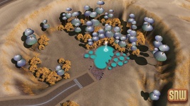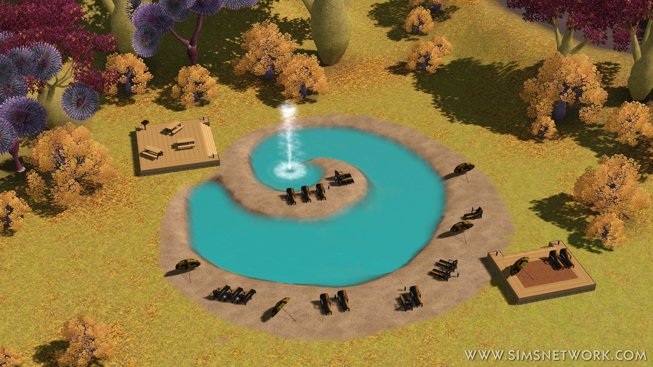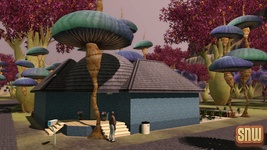 A long time ago, a spaceship with Sims crashed down on a foreign planet. With the spaceship broken, the Sims decided to make the best of it on this new planet. It has grown into a big colony. And it's called Lunar Lakes!