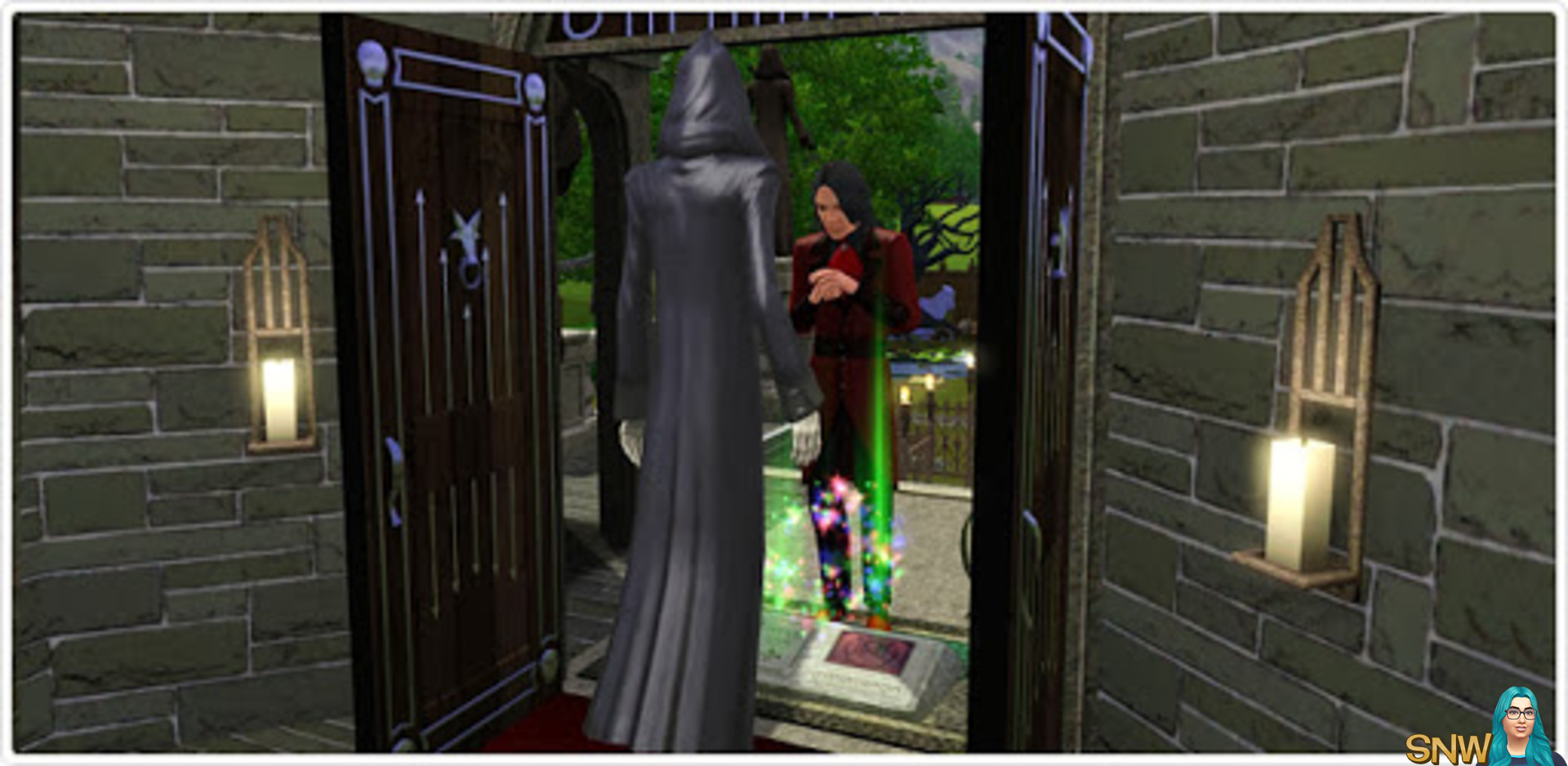 But let’s say your Sim doesn’t need anything that heavy and just wanted to chat with Grim about his day? You can just go Call for the Reaper and your Sim will knock on the door and see if he wants to come out and play. If he’s not too busy in the ethereal plane he’ll answer the door and you might become fast friends. However, there’s a slight chance that if he’s busy you might run into his pet pit monster, Emmie, that lives under his doormat. Emmie, isn’t always the most welcoming to new guests, but your Sim might be quick enough to avoid her rather lethal hug. The good news is that Emmie really hates your enemies, paparazzi and zombies. I mean REALLY hates them. So if your Sim is a celebrity just put this on your lot and don’t worry about those pesky shutterbugs. On your next full moon zombies may spawn on the lot, but the Door attracts them like a bug catcher, Emmie pulls them down to her watery abyss and spits them out when they stop acting all zombified.