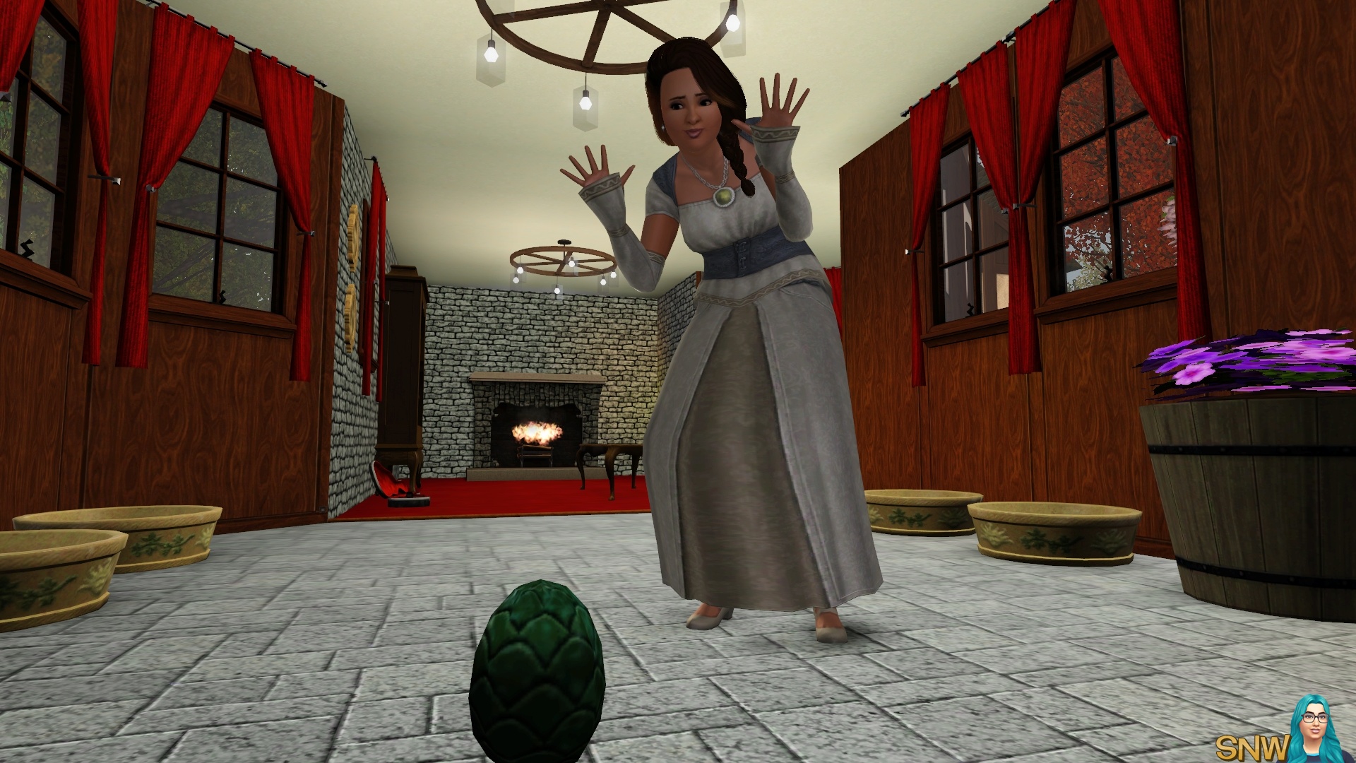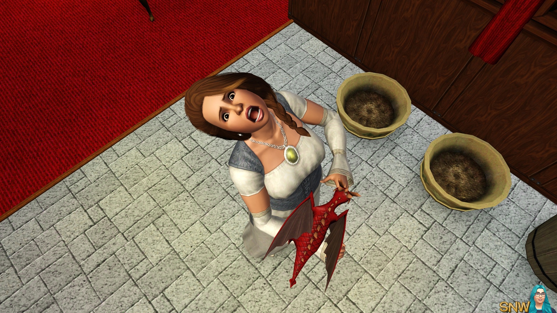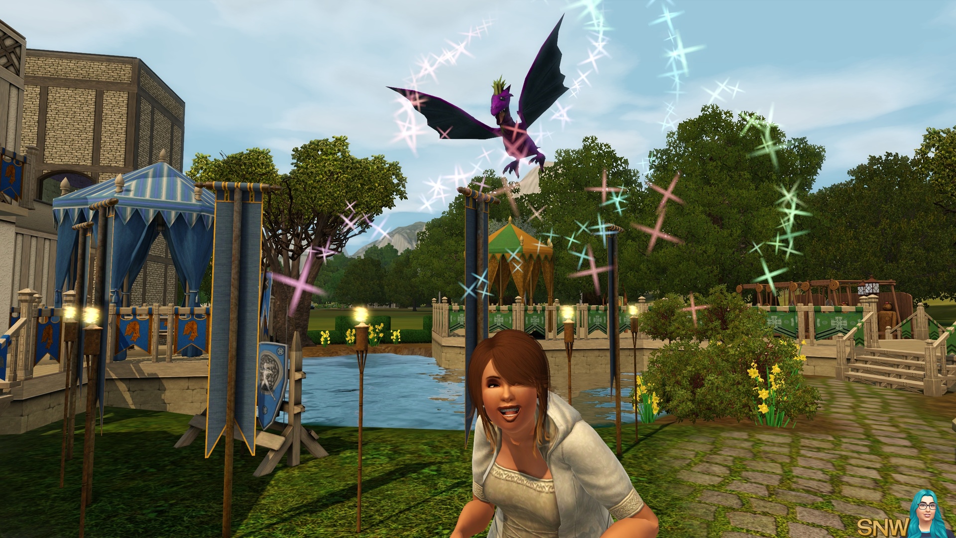As you can see you can try your best to make ye olde world. But the cars, ice cream van and mobile phones sure gave me a good laugh. Of course, Dragon Valley is not necessarily a medieval world. But it appears as one to me. For storytellers the world is awesome, and the modern technology can "ruin" screenshots a little. But I managed to make most of my screenshots without cars "ruining" it. Of course you can live this world in a modern day as well. It's The Sims, use your imagination!