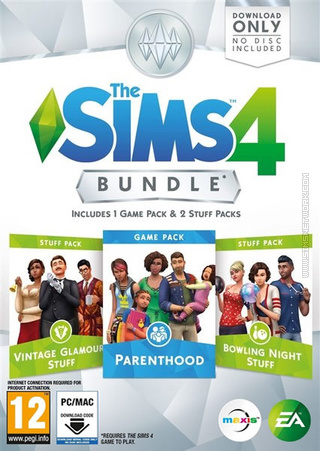 Included in this bundle are The Sims 4: Parenthood, The Sims 4: Vintage Glamour Stuff, and The Sims 4: Bowling Night Stuff.